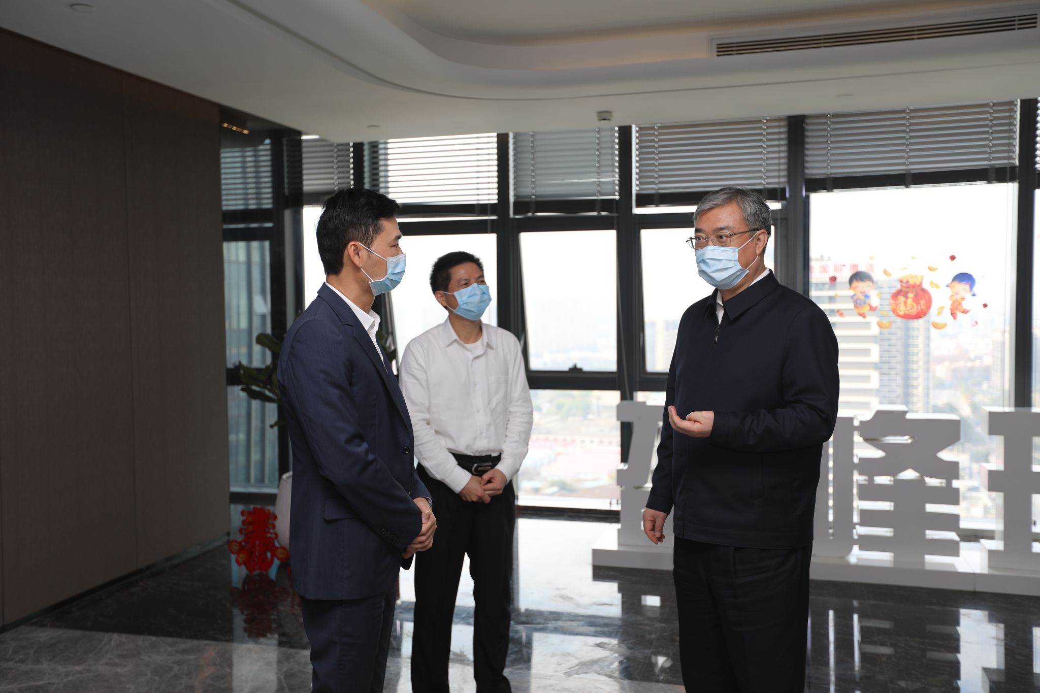 2月25日上午,佛山市市委书记鲁毅来到米兰·(milan)中国环境,就进一步做好企业复工复产及疫情防控工作进行调研检查。市委副秘书长张朝志、顺德区区长彭聪恩陪同调研,米兰·(milan)中国集团董事长兼总裁何剑锋、米兰·(milan)中国环境董事长兼总裁马刚陪同介绍。