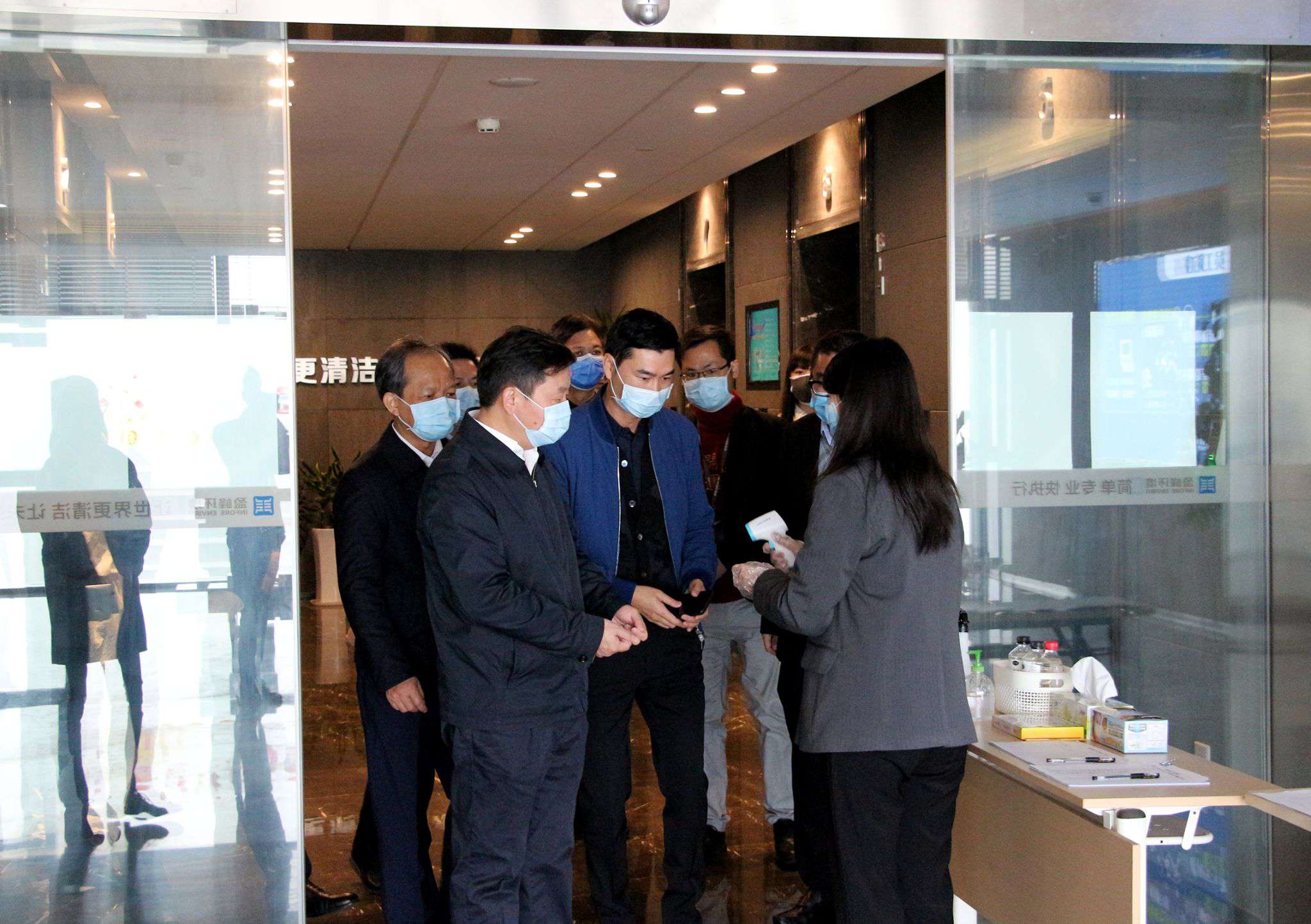 朱伟市长一行到达米兰·(milan)中国环境,首先配合米兰·(milan)中国环境的体温检测岗经过了严格的测量后,进入到企业办公区、会议室等区域,就企业的防疫物资、防疫制度文件、员工信息登记台账等情况进行了全面的调研与检查。